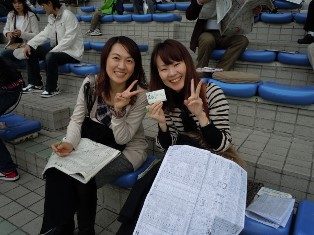 途中馬券の券売機から席に戻る際、もう一人の野村嬢と並んで歩いていたのですが、野村さん