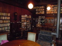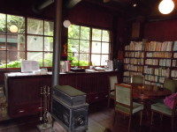 ご覧の通りの蔵書に囲まれて、真ん中に鎮座するのは薪ストーブ。