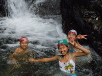 これは滝壺ではないのですが、一部非常に深いのでちょっとビビってしまって、岩の上からの飛び込みは中止に。